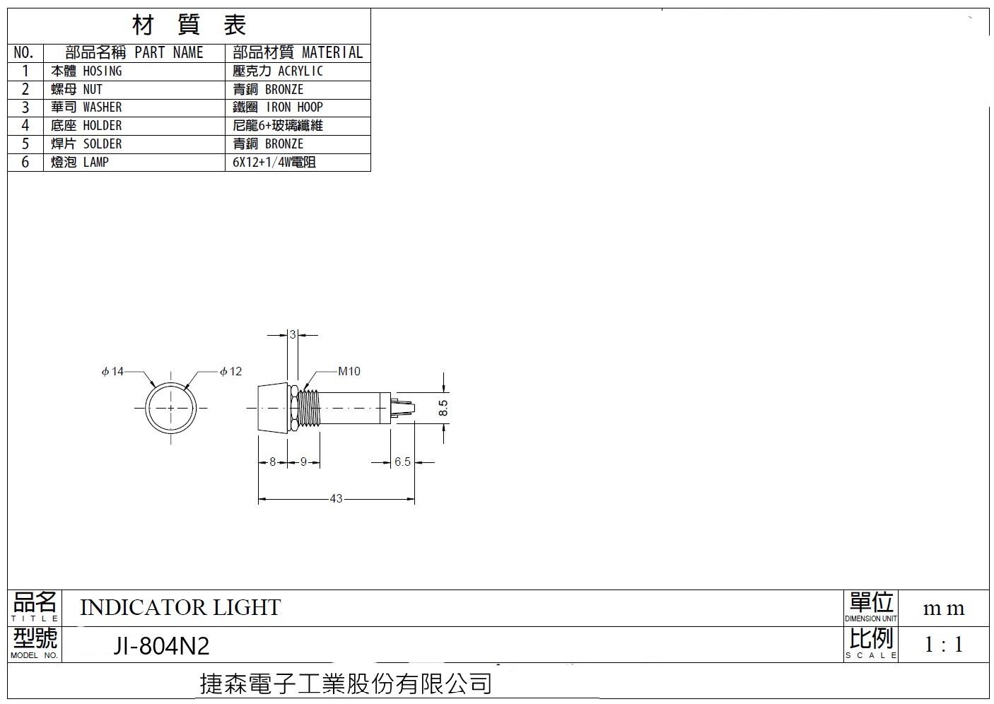 N1 (125V Neon)   L1 ( 6V LED)   P1 (DC  6V)